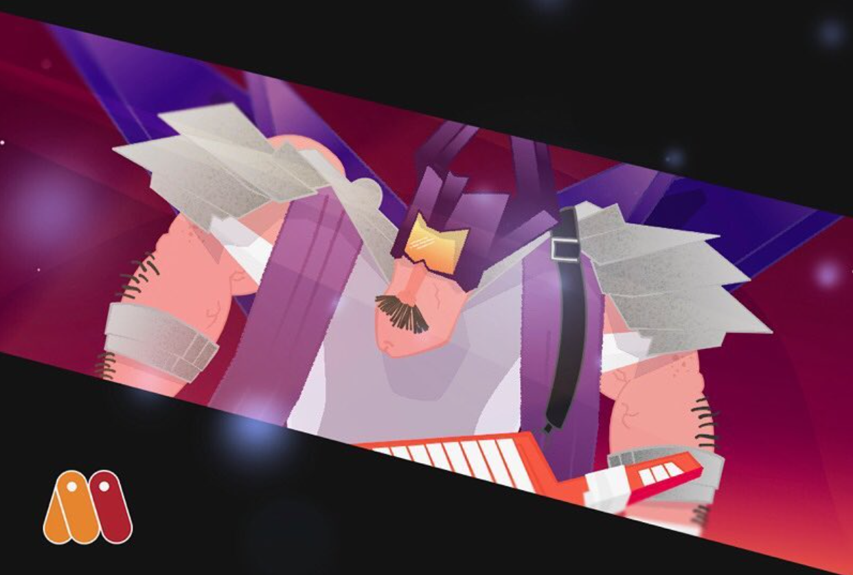 Another unique opportunity with Moho was the chance to create a character and scene that would be built into the next release of the software as a free sample file. When I started learning this software, there were always 4-5 samples that you could learn from that were inspirational and would push my understanding. I was given a great opportunity to step into this role and I didn’t want to disappoint, so I came up with a wrestler with a mustache and a Keytar named Zorbatron.